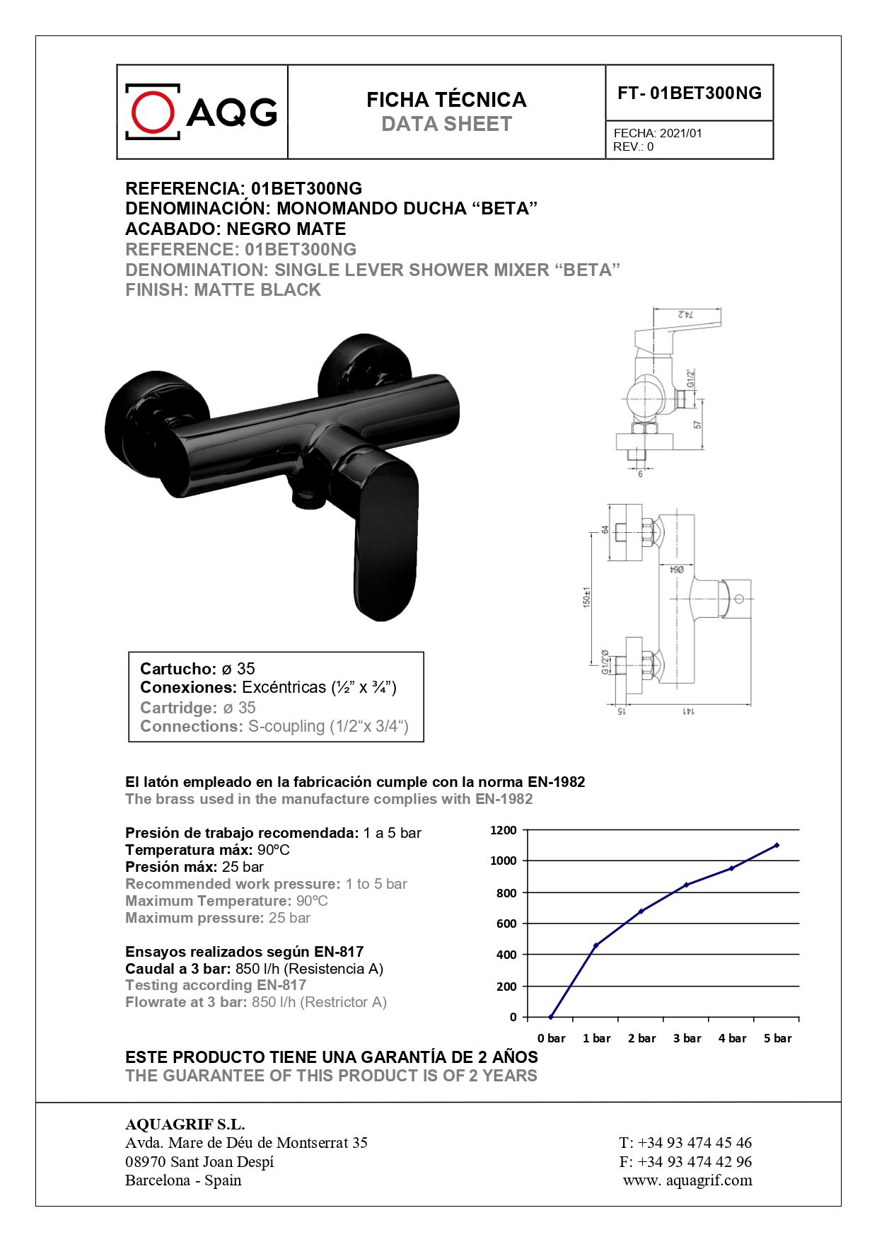 AQG Beta, смеситель для душа без набора для душа, черный матовый, 01BET300NG