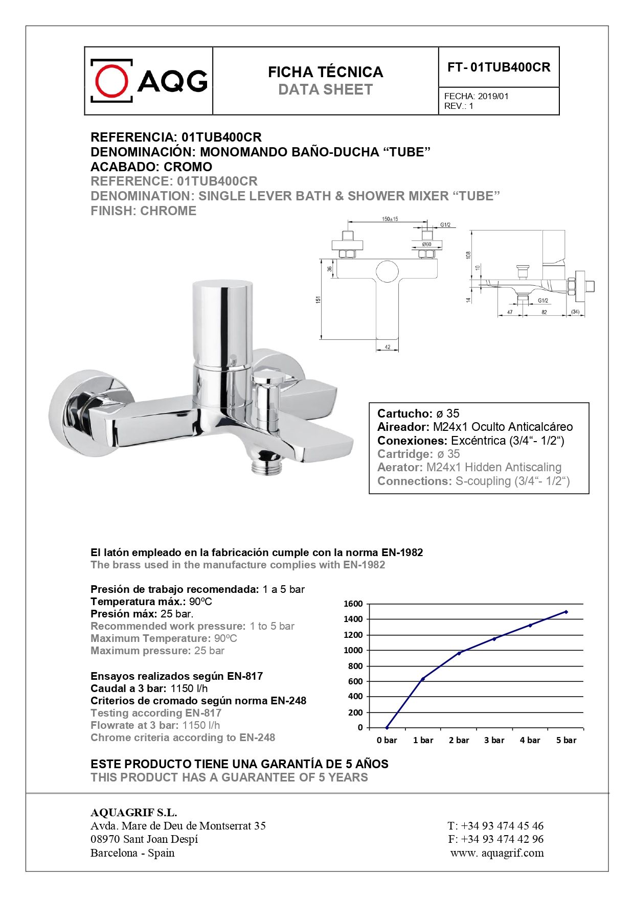AQG Tube, смеситель для ванны c набором для душа SETI, хром, 01TUB410CR