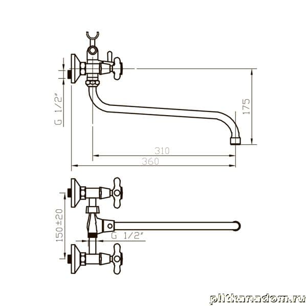 Argo Retro 202R Смеситель для ванны и умывальника, хром