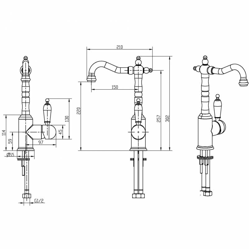 Boheme Crystal 282-CRST Смеситель для умывальника, высокий, золото