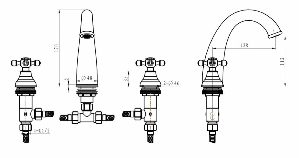 Boheme Flora 277-FL Смеситель для раковины на 3 отверстия, хром