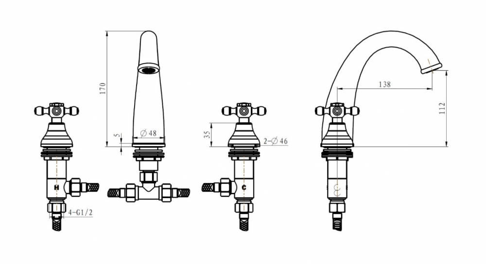 Boheme Flora 297-FL Смеситель для раковины на 3 отверстия, золото