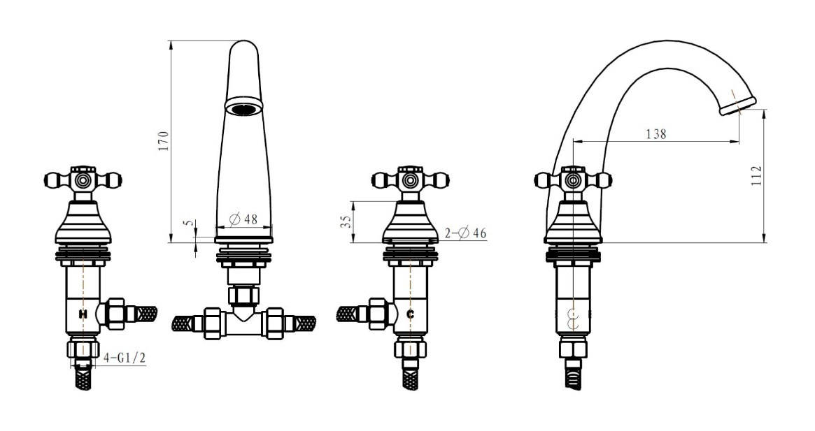 Boheme Royal Crystal 277-Royal-CRST Смеситель для раковины на 3 отверстия, хром