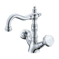 Boheme Серия Q 141-W Смеситель для умывальника низкий, White, ручка золото, изогнутая