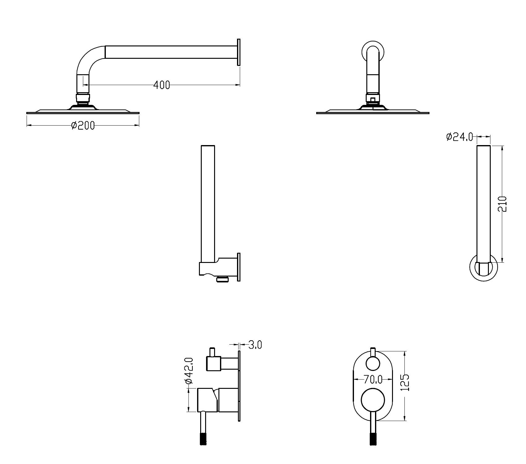 Boheme Uno 464-MG Смеситель встроенный + верхний + ручной душ, Matt Gold