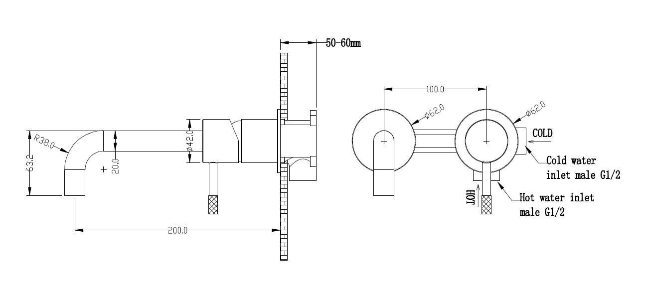 Boheme Uno 465-B Смеситель для умывальника из стены, Черный