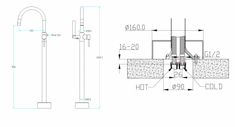 Boheme Uno 469-B (229-B) Смеситель напольный, Черный