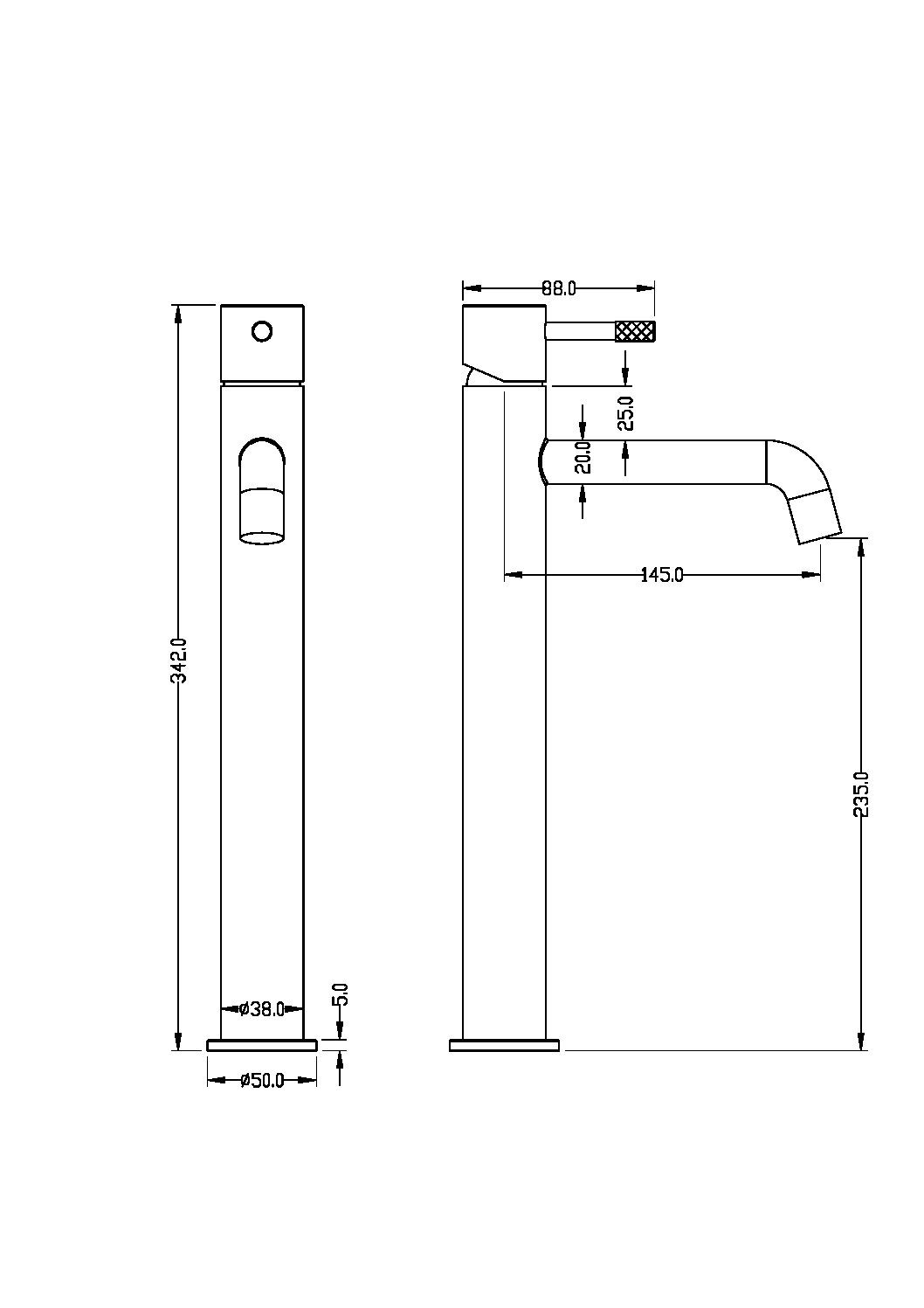 Boheme Uno Смеситель для умывальника высокий, Nikel Brush