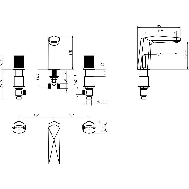 Boheme Venturo 150-BG-Touch Смеситель врезной на 3 отверстия, Черный-Золото, ручка Touch