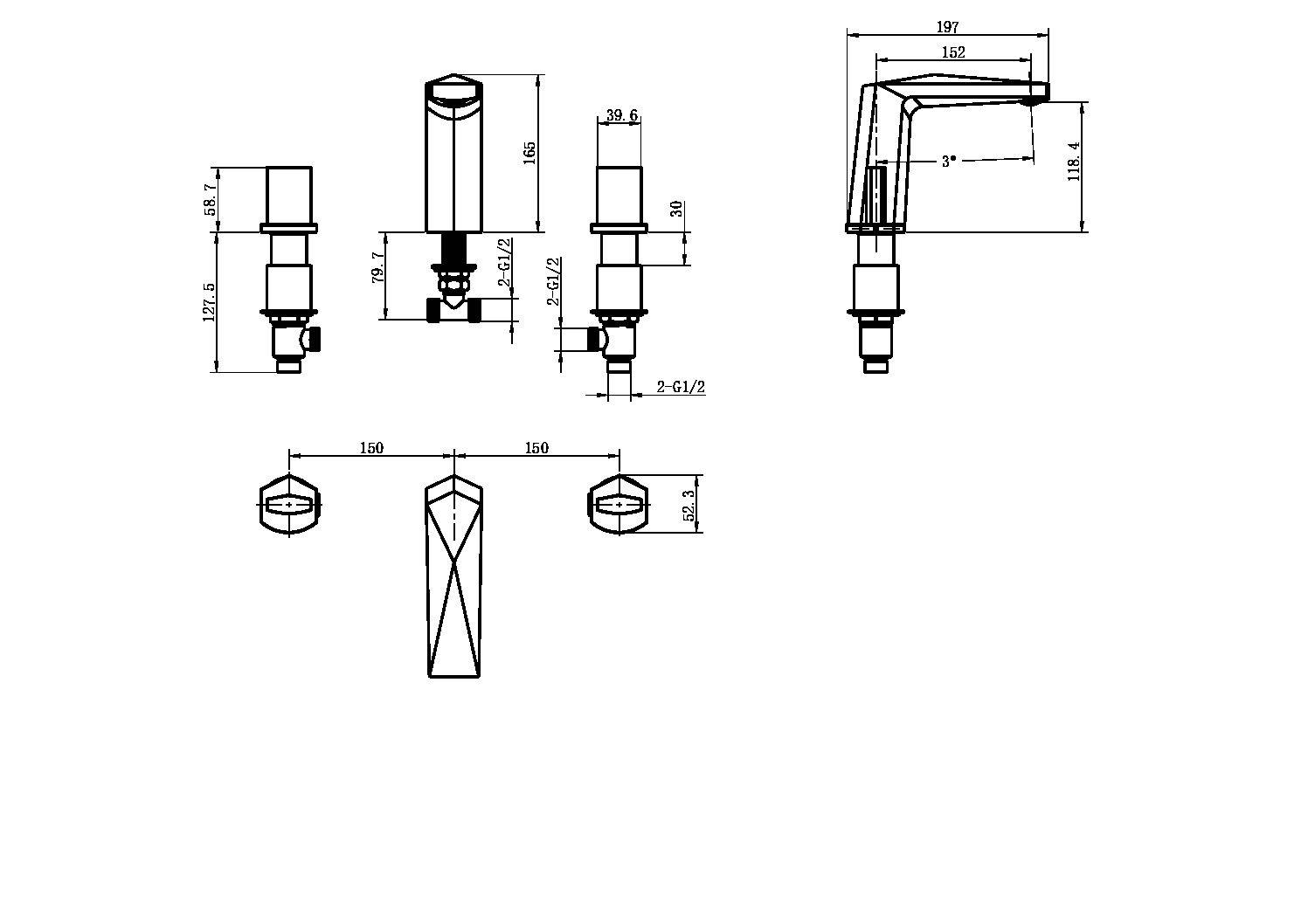 Boheme Venturo 150-GM-Touch Смеситель врезной на 3 отверстия, Gun Metall, ручка Touch
