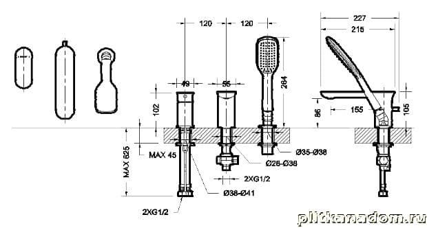 Bravat Gina F565104C-2-ENG Смеситель на три отверстия, хром
