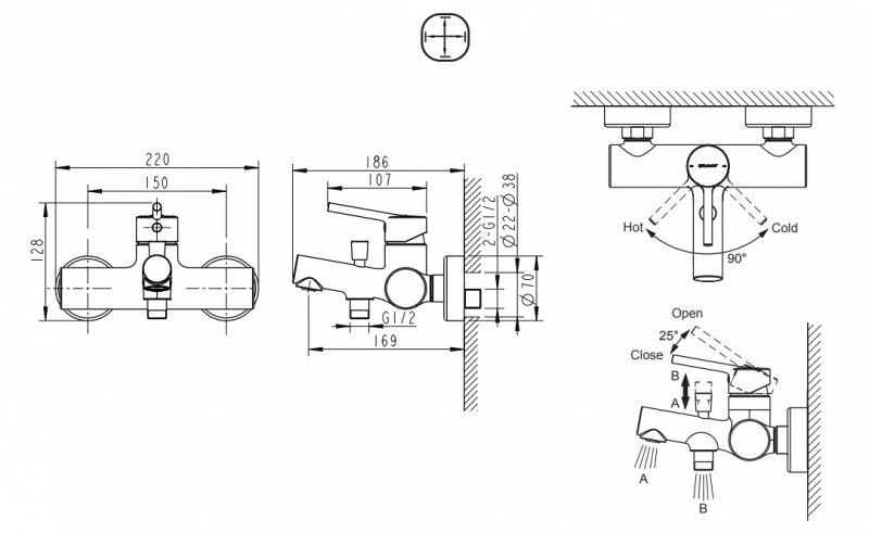 Смеситель для ванны Bravat Palace Black, черный (F6172217BM-01-RUS)