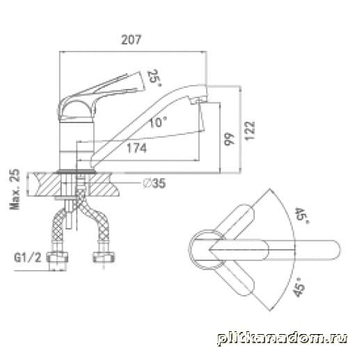 Calorie 2023A06COT Смеситель для кухни, боковой на гайке, укороченый