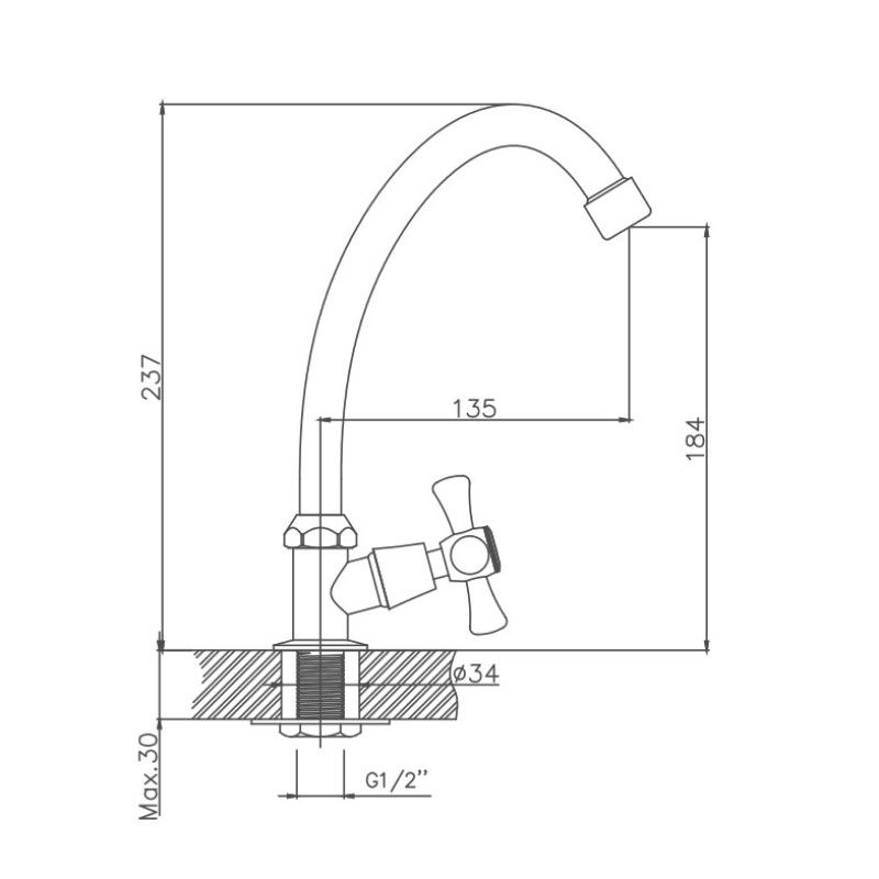 Кран для холодной воды Cron CN4108, хром