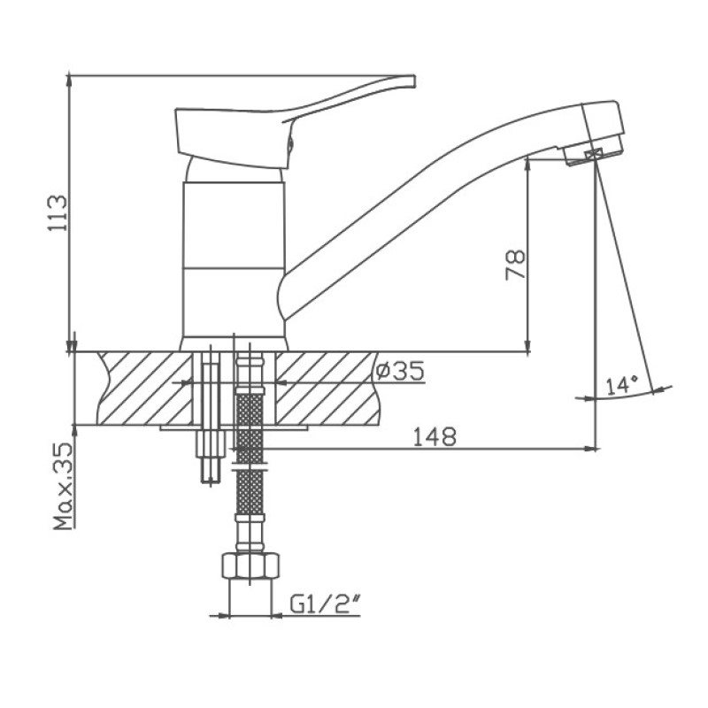 Смеситель для кухни Cron CN4514, хром