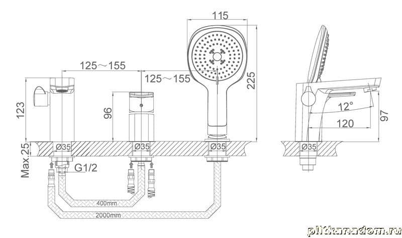 D&K DA1434915 Врезной каскадный смеситель для ванны