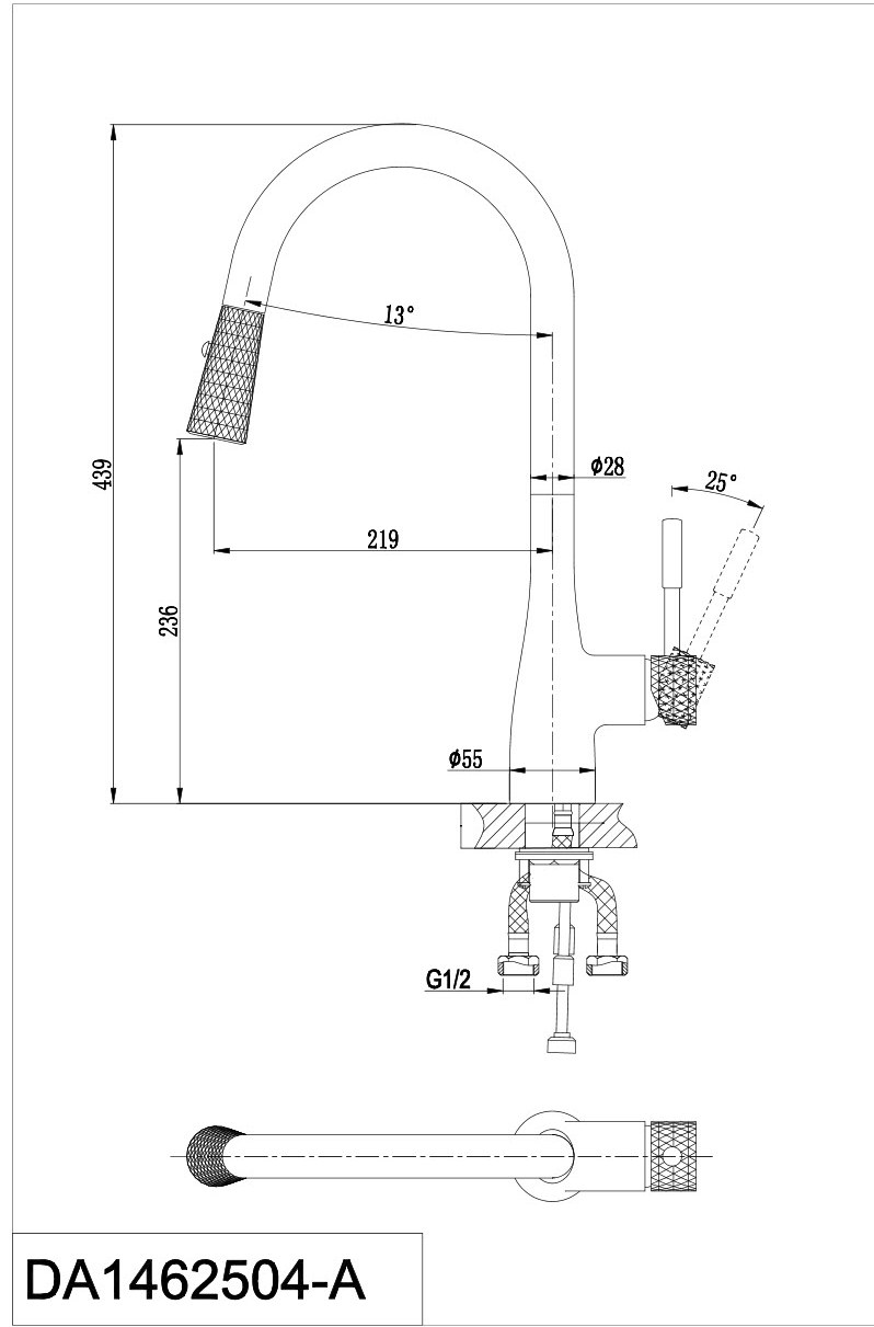 Смеситель для кухни D&K Rhein Schiller с выдвижной лейкой хром золото (DA1462504A)