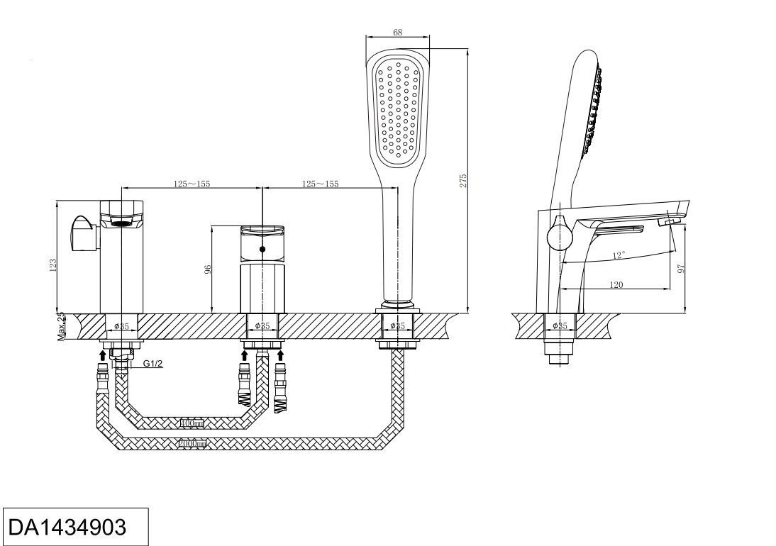 Смеситель на борт ванны D&K Berlin Tourto (DA1434903) врезной золото