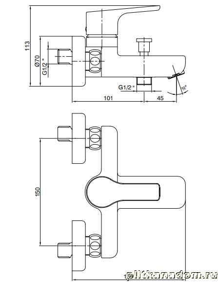 E.C.A Luna 102102450EX Смеситель для ванны, хром