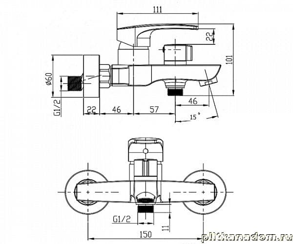Elhgansa Monica White 2322519-White Смеситель для ванны однорычажный с душевым комплектом