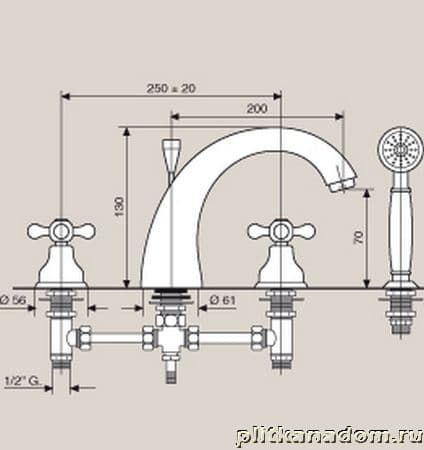 Emmevi Rubinetterie Deco Classic 12120 Смеситель на край ванны с ручным душем ,4 отверстия (белый-хром)