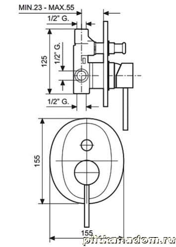 Emmevi Rubinetterie Piper 45019 Смеситель внутристенный с переключателем на 2 выхода (хром)