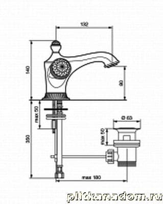 Emmevi Rubinetterie The One 98003VSW Смеситель с донным клапаном,мет.ручки+прозрачные кр-лы Swarovski (бронза)