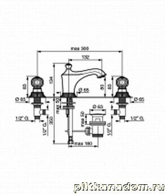 Emmevi Rubinetterie The One 98033 Смеситель с донным клапаном для раковины на 3 отверстия,металлические ручки (бронза)