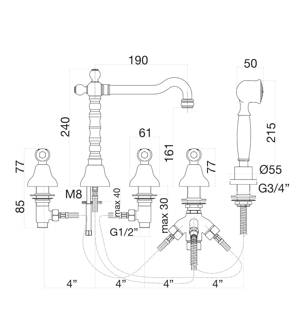 Fiore Coloniale 02CR0607 Смеситель на борт ванны, Хром