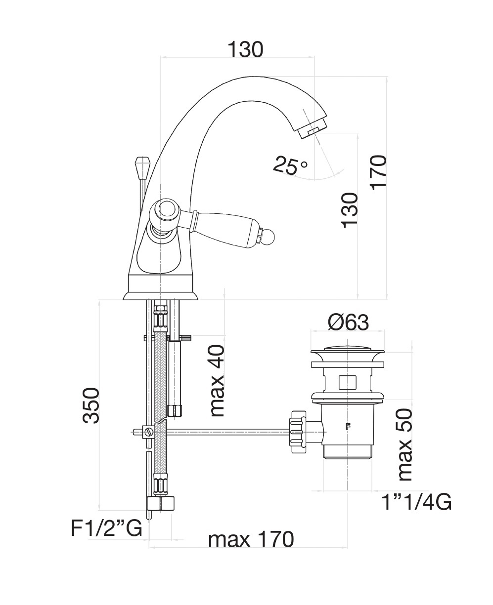 Fiore Coloniale 02ZZ0623 Смеситель для раковины, Бронза