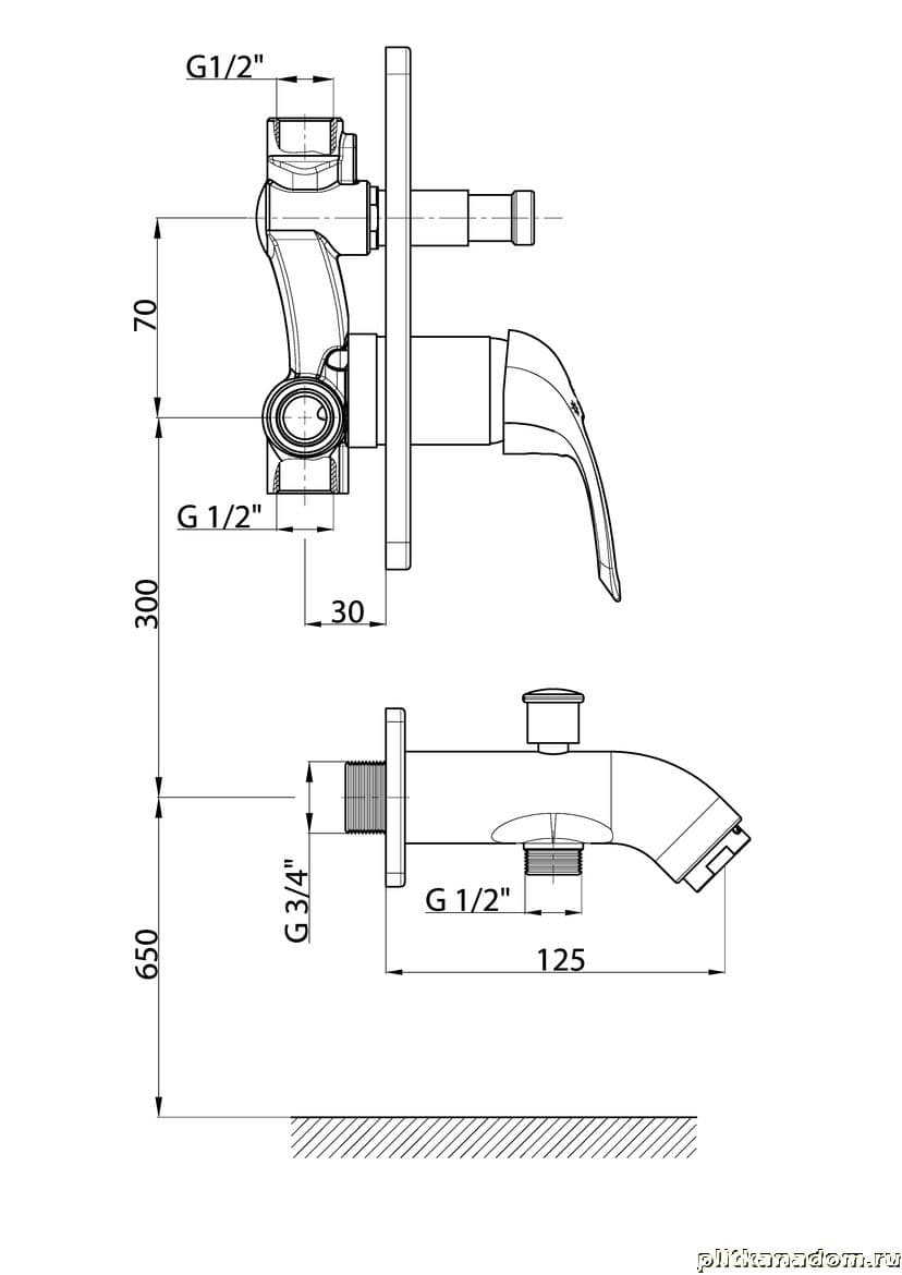 GPD Adrio MTA 120 Накладная панель с изливом и с дивертером