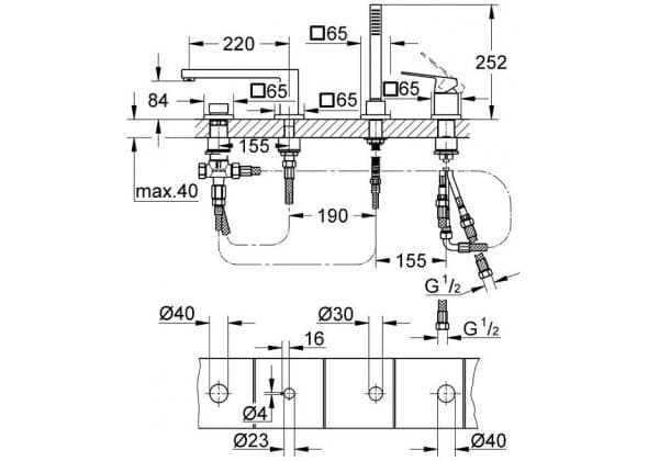 Смеситель на борт ванны Grohe Eurocube 19897001