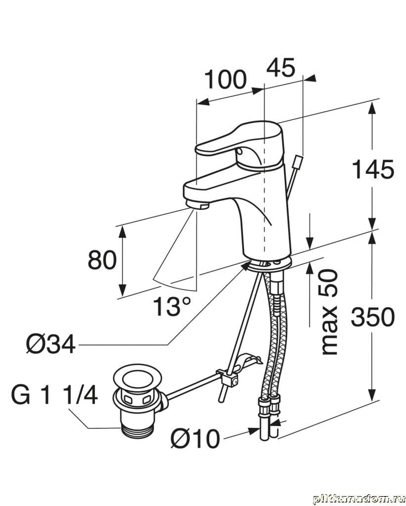 Gustavsberg Nautic GB41214041 Смеситель для раковины с донным клапаном, с рычагом