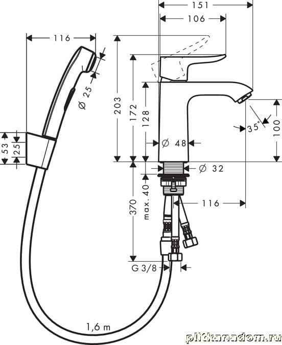 Hansgrohe Metris 31285000 Смеситель для раковины 110 мм с гигиеническим душем