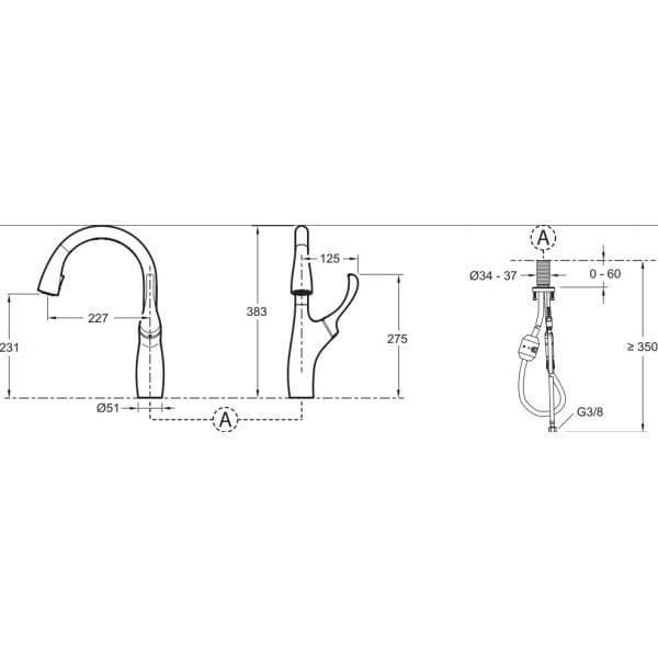 Смеситель Jacob Delafon Suzanne E72511-VS для кухонной мойки, с двухрежимным выдвижным изливом, матовый хром