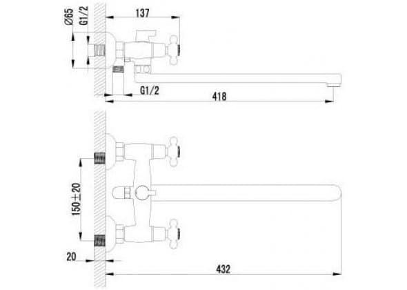 Смеситель для ванны с душем Lemark Standard LM2112C