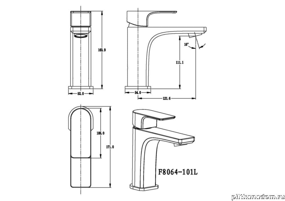 Linisi Zeus F8064-101L-A01 Смеситель для раковины с удлиненным изливом, хром