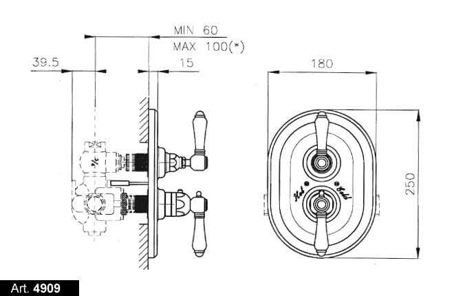 Cмеситель Nicolazzi Termostatic 4909CR78 для душа, хром/P.M.Blanc