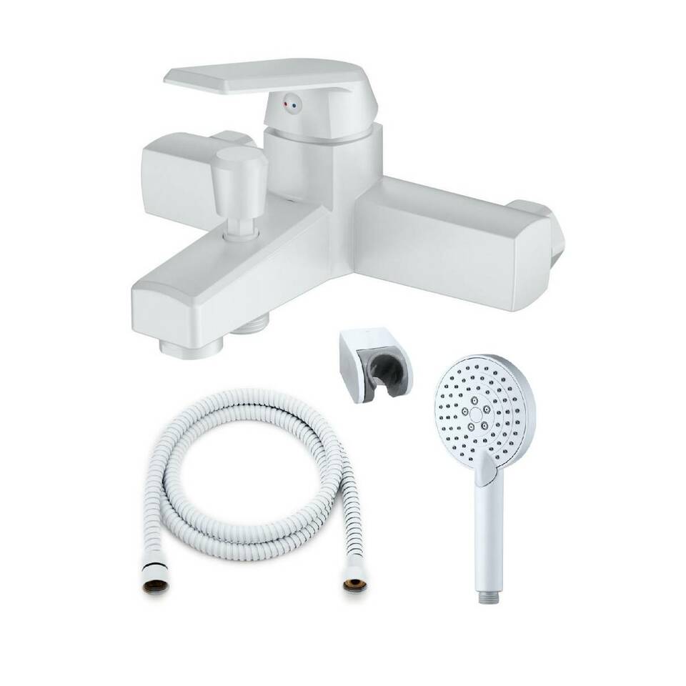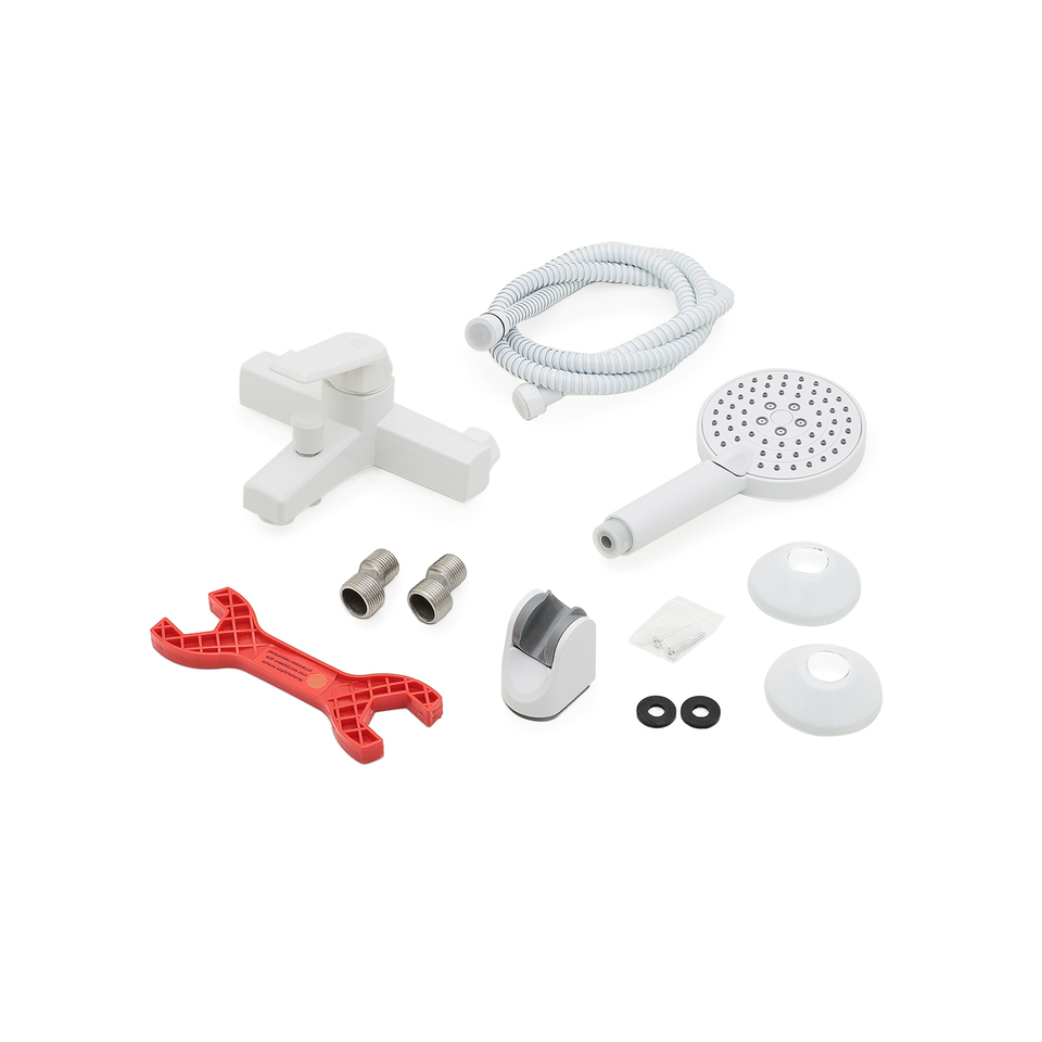OneLife P02-300w полимерный смеситель для ванны с душ.набором, белый
