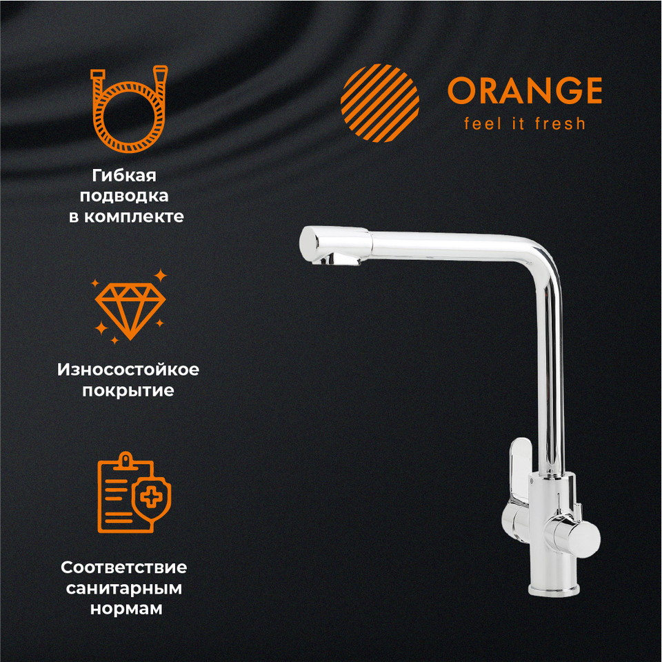 Смеситель для кухни Orange Steel M99-008cr с каналом питьевой воды