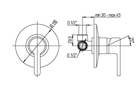 Смеситель Paini Arena 92CR690 для душа, встраиваемый
