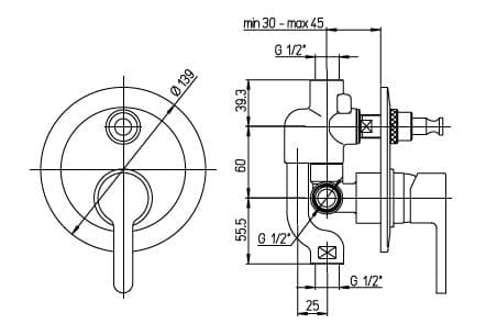 Смеситель Paini Arena 92CR691 для ванны и душа, встраиваемый