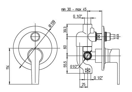 Смеситель Paini Le mans 90CR691 для ванны и душа, встраиваемый
