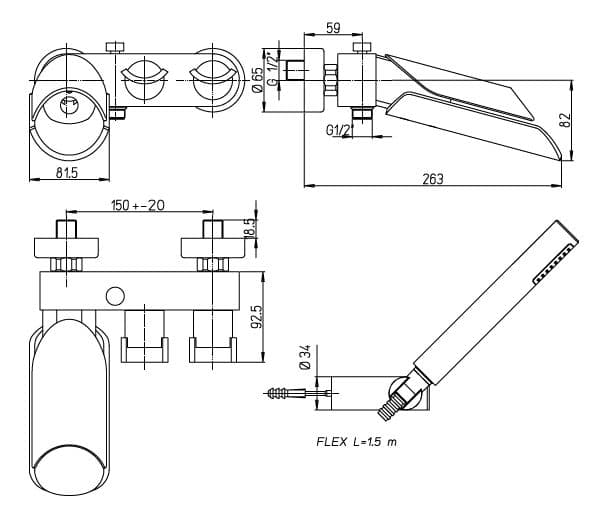 Смеситель Paini Morgana 73OP105 для ванны и душа с душевым гарнитуром, золото PDV