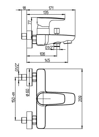 Смеситель Paini Parallel 47CR111 для ванны и душа