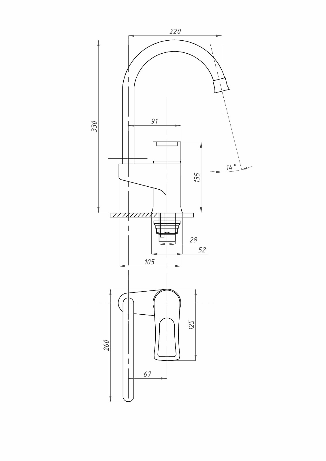 Смеситель для кухни ПСМ-Профсан Модерн (PSM-384-017) тип См-МОЦБА