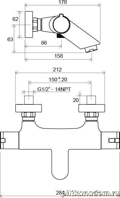 Ravak Termo X070047 Смеситель настенный термостатический для ванны без гарнитуры TE 022.00