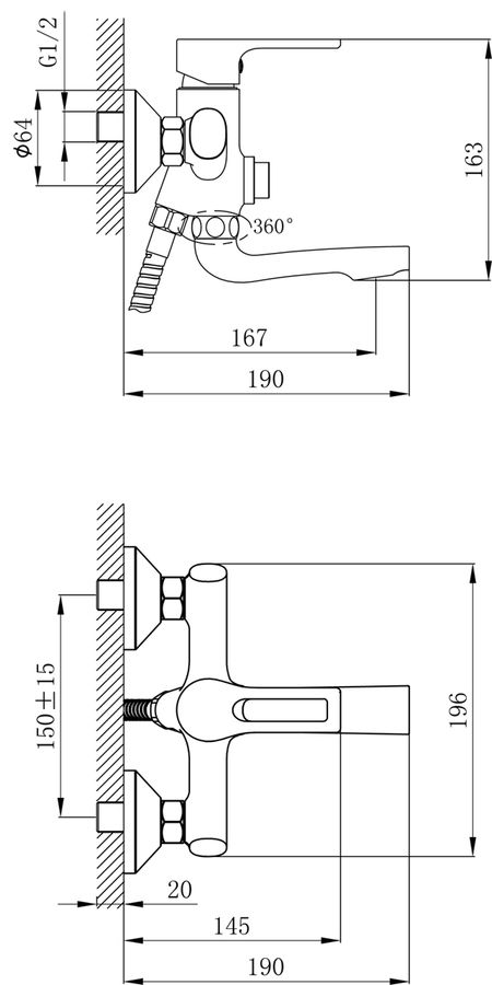 Смеситель Rossinka RS43-36 для ванны универсальный