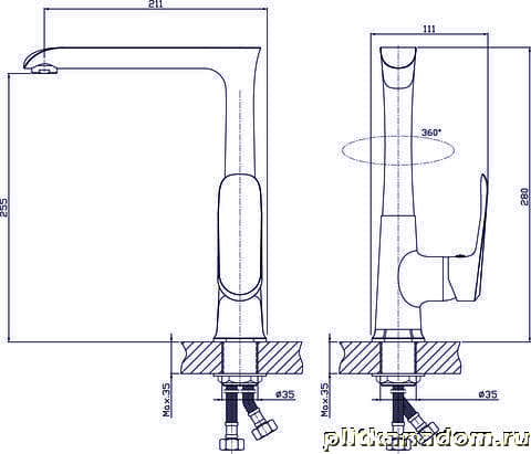 Rush Gozo GZ3735-23 Смеситель для кухни с высоким поворотным изливом, хром