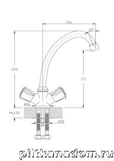 Rush Pioneer PI7950-22 Смеситель для кухни с высоким поворотным изливом, хром
